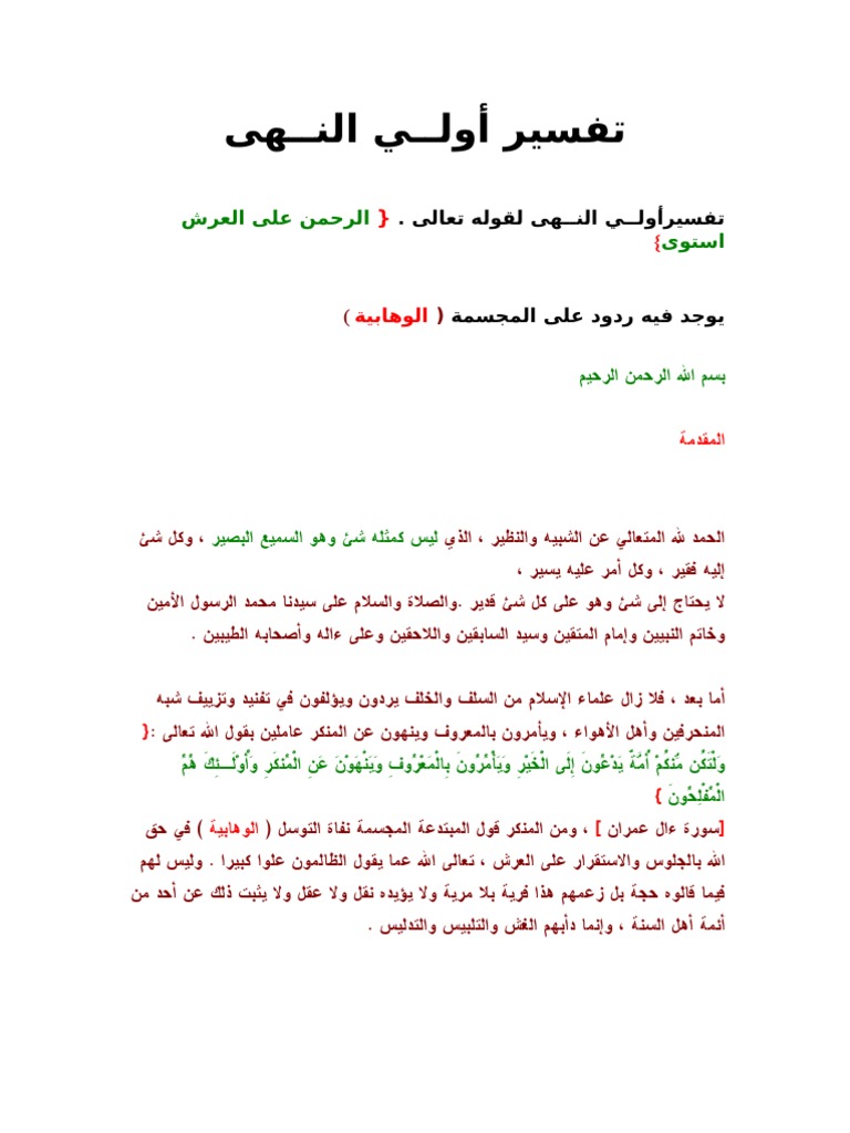 تفسير أولي النهى لقوله تعالى الرحمن على العرش استوى