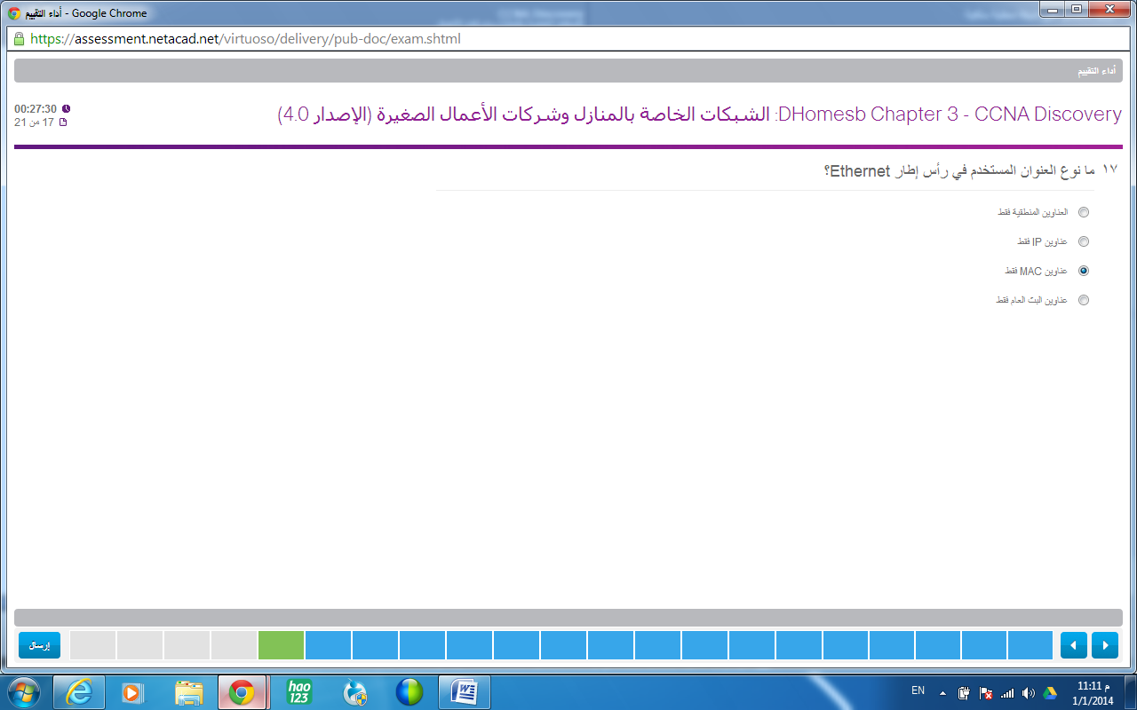 Cisco Networking سيسكو نت أجوبة اختبار الوحدة الثلاثة الفصل 3 لمادة مبادئ شبكات1 Dhomesb Exam Chapter 3